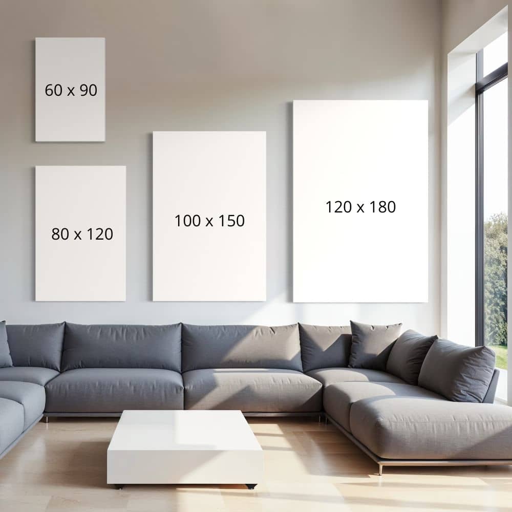 Twijfel je tussen twee maten? Dan raden we aan om voor de grotere maat te kiezen. Veel klanten geven achteraf aan dat ze liever een groter kunstwerk hadden besteld. Wanddecoraties lijken in werkelijkheid vaak kleiner dan verwacht, vooral door de grootte van de ruimte en aanwezige meubels. Een groter formaat zorgt ervoor dat het kunstwerk echt tot zijn recht komt en aanwezig is in je interieur.