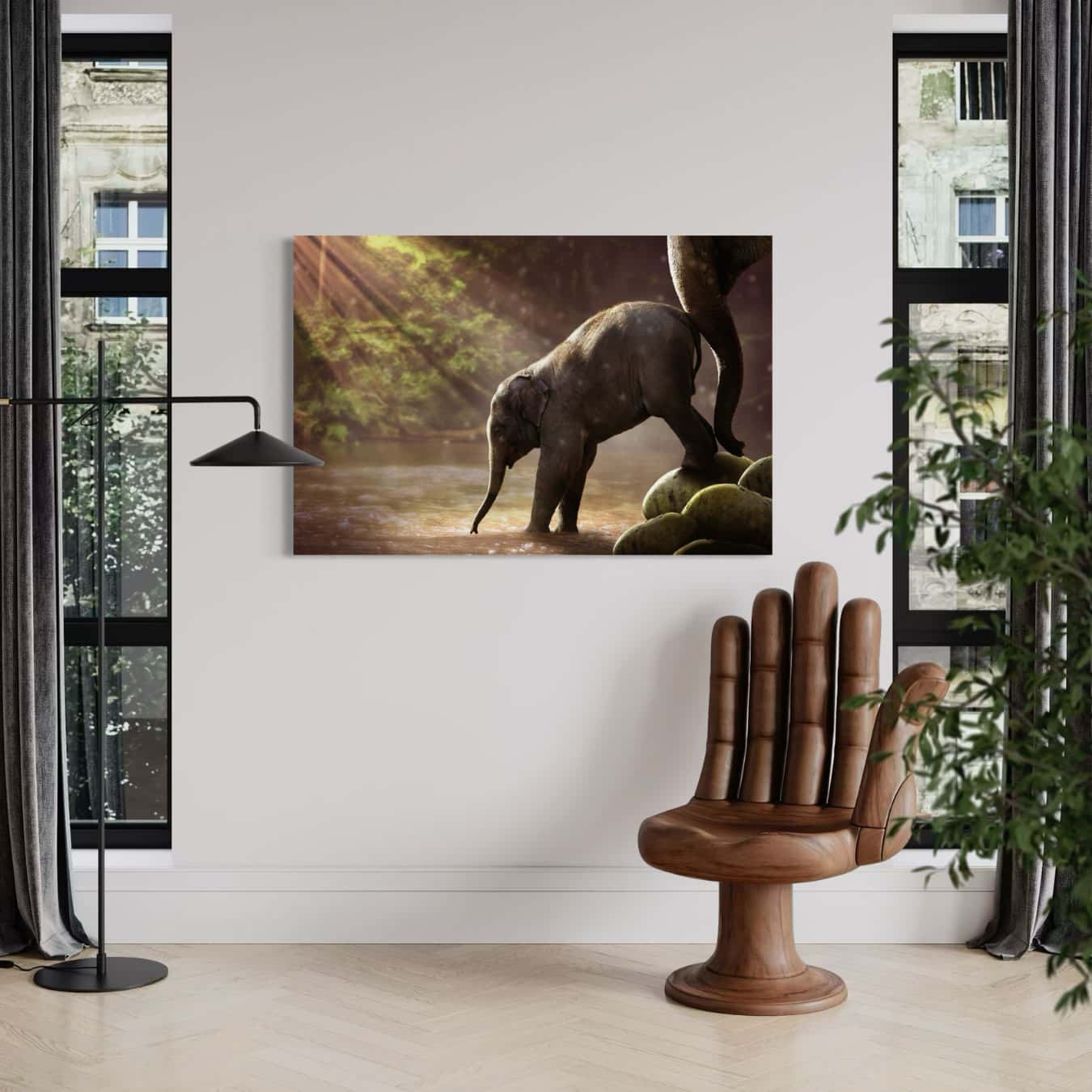 Klaar! Je wanddecoratie hangt nu strak en stijlvol aan de muur — zonder zichtbare bevestiging.